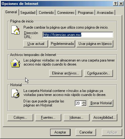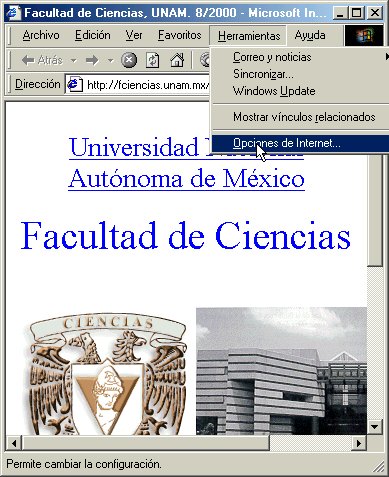 En el menú principal, dar un clic en Herramientas y seleccionar Opciones de Internet, como lo muestra la figura 1.1