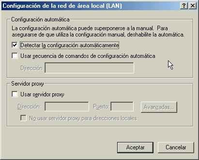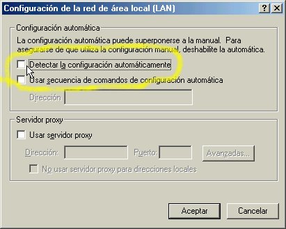 A continuación, se deshabilita la opción Detectar la configuración automáticamente, de tal manera que aparezca vacío el pequeño cuadro a la izquierda de esta opción, como lo muestra la parte resaltada de la figura 1.5 (para habilitar o deshabilitar este tipo de opciones, solo hay que aplicar un clic en el cuadrito)