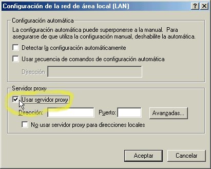 Ahora se habilita la opción Usar servidor Proxy (deberá tener una "palomita" como lo muestra la parte resaltada en la figura 1.6)